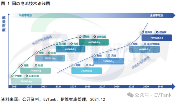 发表时间:2025-01-06 15:02来源:EVTank 近日,研究机构EVTank联合伊维经济研究院共同发布了《中国固态电池技术及产业化发展现状与趋势研究报告(2025年)》。研究报告显示,经过多年的研发和中试,中国固态电池产品单一性能指标不断突破,业界披露的全固态电池样品单体能量密度已经超过700Wh/kg,循环寿命超过3000次,充电倍率达到5C,固态电池的产业化的技术基础日益牢固。